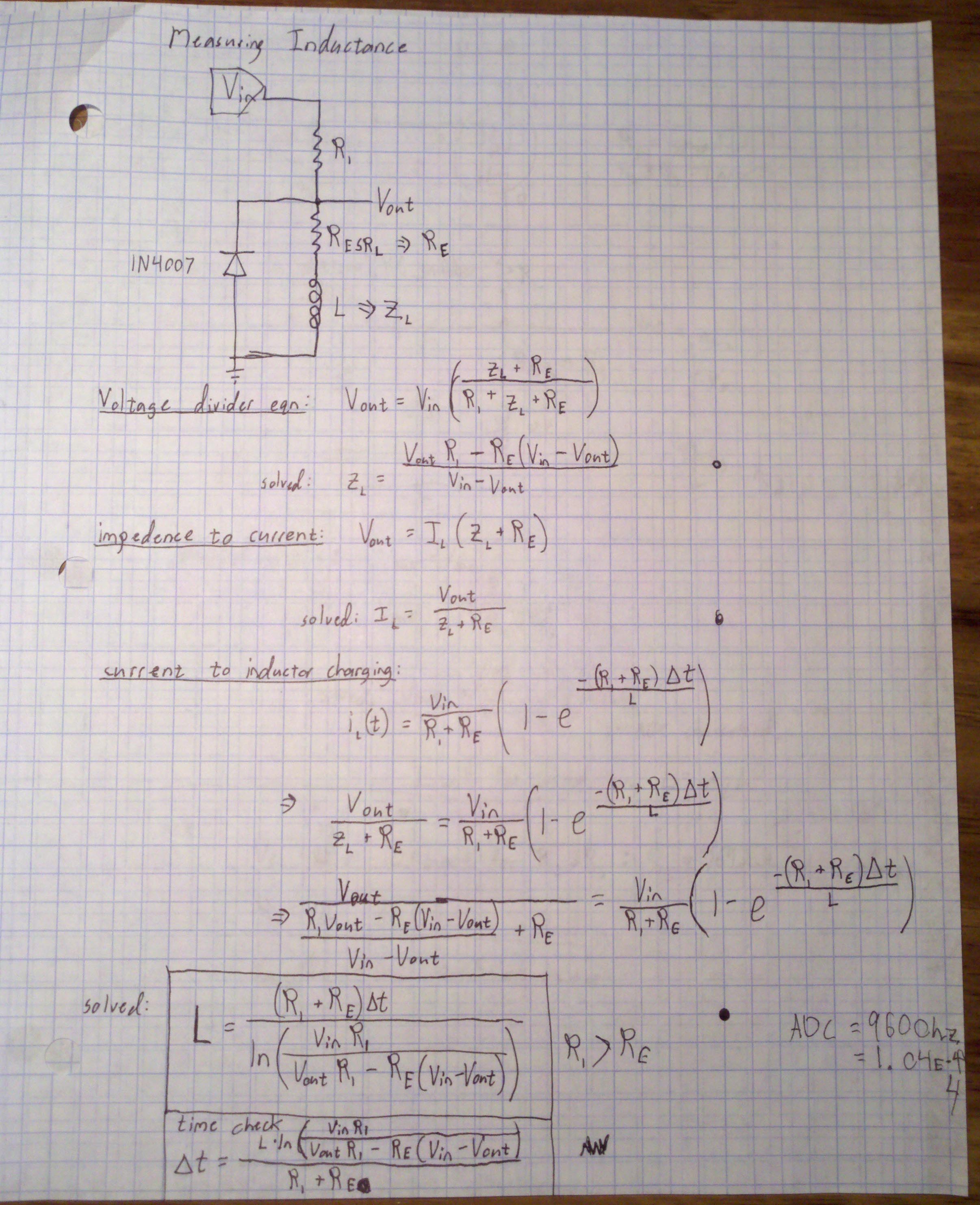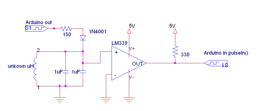 As you can see, it’s a different way to measure inductance with an Arduino. It worked first try (although the first capacitor I chose led to thermal sensitivity as I mentioned above, a different cap solved that)., but I just can’t get the sensitivity up to what I need. I thought up some other methods to use an Arduino to measure inductance, one pretty much identical to your circuit. I searched Google to see if anyone had done this before, and one of the first hits was your article. It seems I’m on the right track!