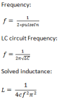 To the left are the equations where f is the resonating frequency, c is capacitance, and L is inductance. Solving for inductance will result in the last equation