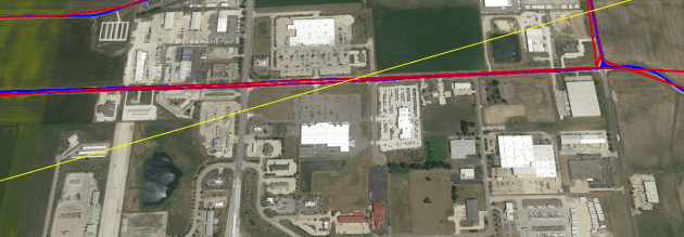 Zoom into the industrial area from previous image — Found the line of sight path!